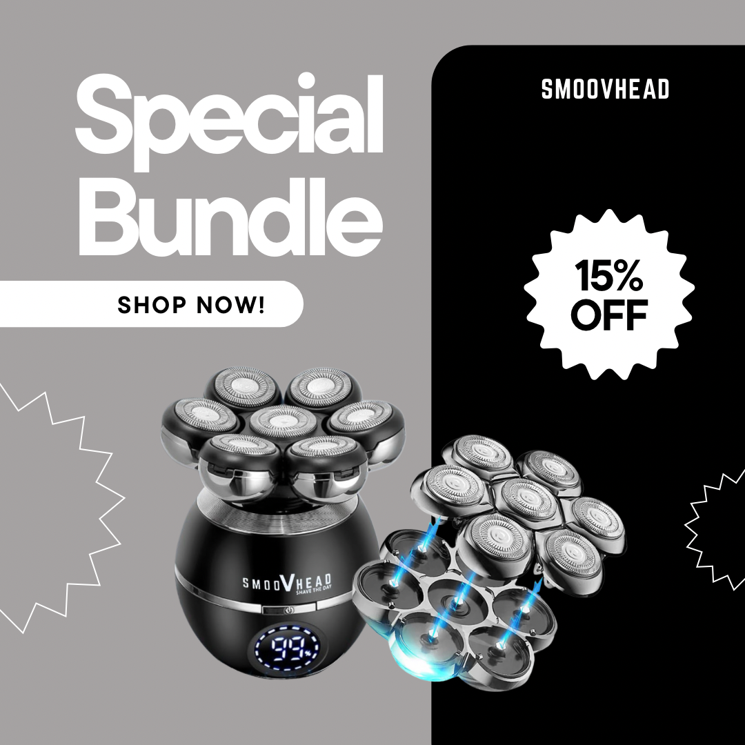 The Bundle includes our best-selling Smoovhead Shaver plus an extra Pro Magnetic Replacement Head — giving you long-lasting performance and unbeatable value.