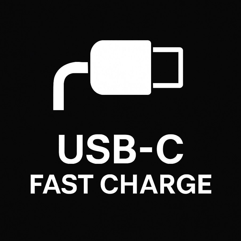 USB-C charging and protective travel case included.
